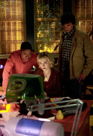 Sam Jones III as Pete Ross, Allison Mack as Chloe Sullivan, and Tom Welling as Clark Kent, from the episode "Reaper"