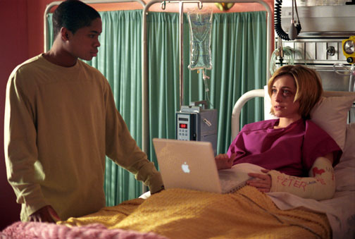 Sam Jones III as Pete Ross and Allison Mack as Chloe Sullivan, from the episode "Kinetic"