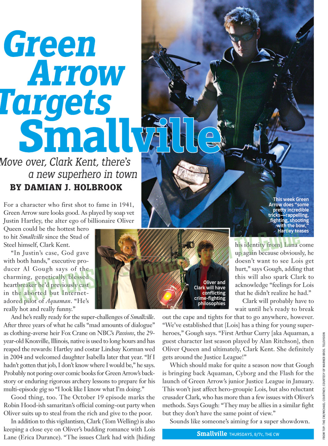 Smallville and its characters are copyright ©2006 Warner Bros. & DC Comics. This is a fan site and not authorized by the WB, the CW, or DC. Page copyright ©2006 KryptonSite, unless the material is noted as coming from someplace else. Smallville stars Tom Welling, Kristin Kreuk, Michael Rosenbaum, Annette O'Toole, Erica Durance, Aaron Ashmore, John Glover, and Allison Mack.