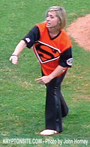 Allison throws the first pitch.
