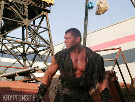 skin, black leather, and long hair. Batista as Lobo